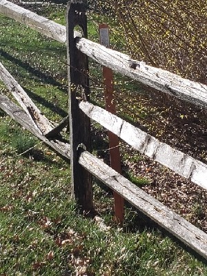 Orange Witness Post behind fence.