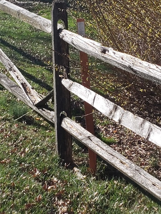 Orange Witness Post behind fence.